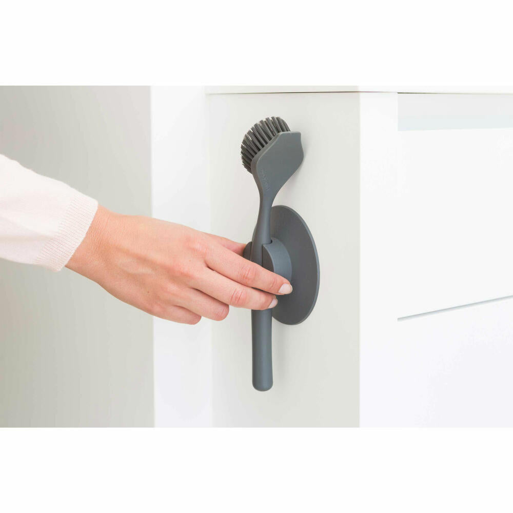 Brabantia Dishwashing Brush with Suction Cup Holder, Brush Holder, Plastic, Dark Grey, 117589