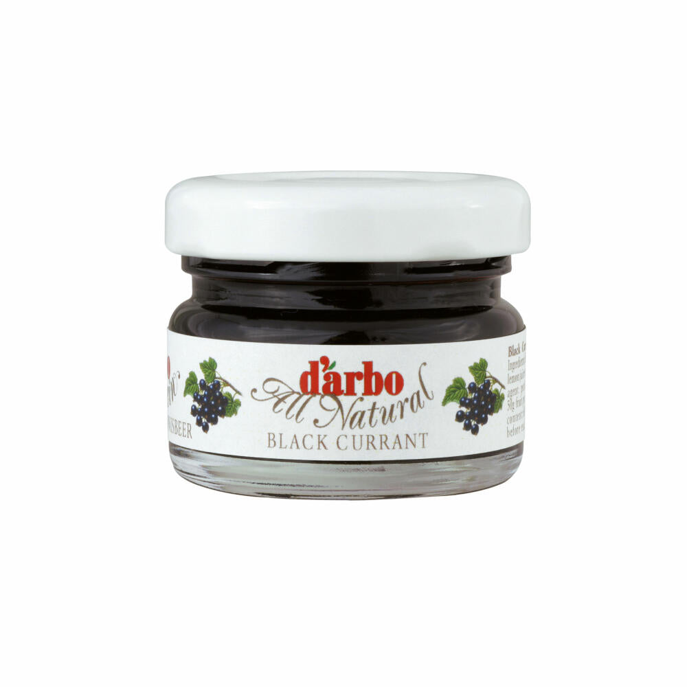 Darbo Blackcurrant Jam Extra in mini glass, bread spread, bread spread, jam, for gastronomy, hotel, office, canteen, 60 pieces á 28 g