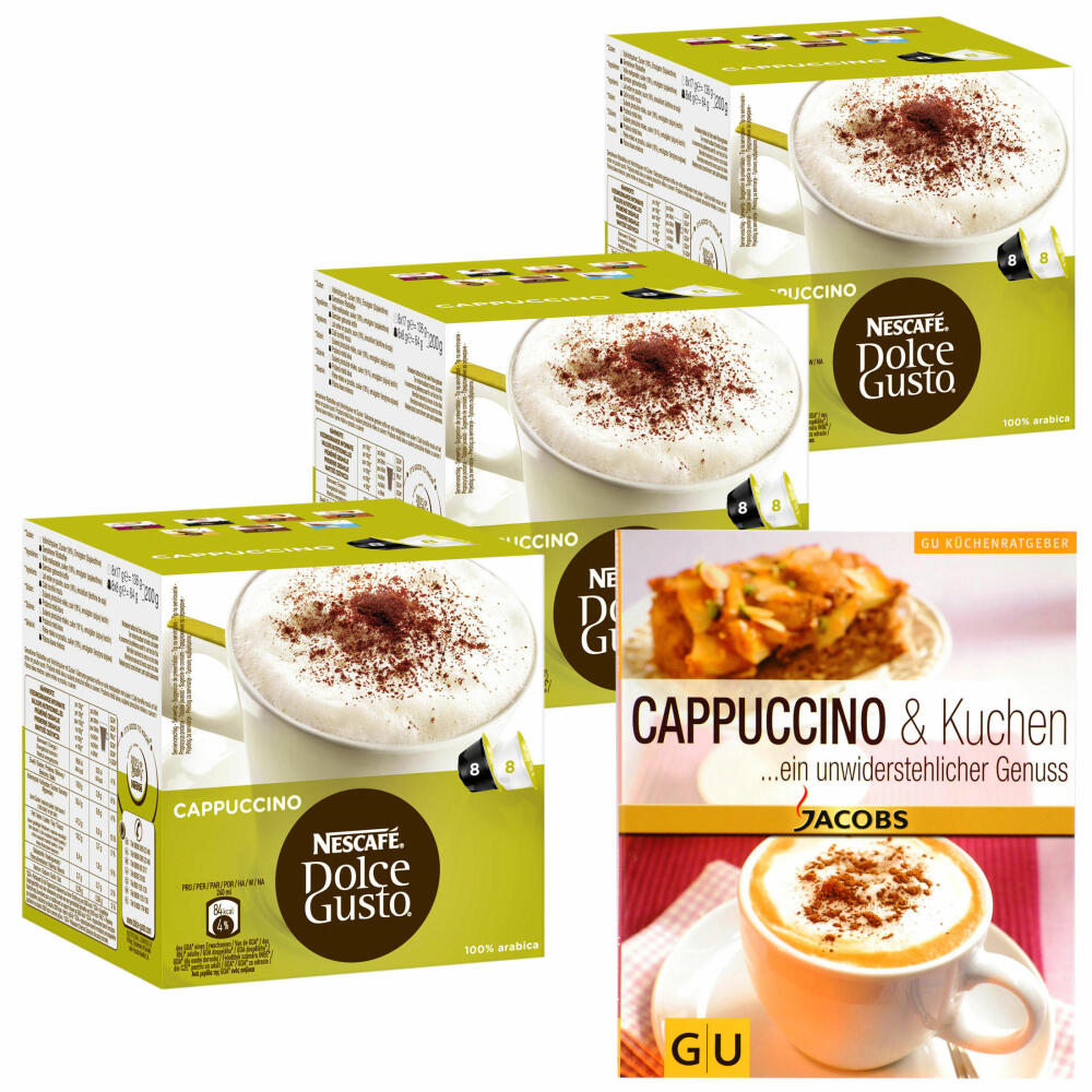 Dolce Gusto Cappuccino Gift Set for Christmas: 3 x 16 Cappuccino Capsules + Free Kitchen Guide