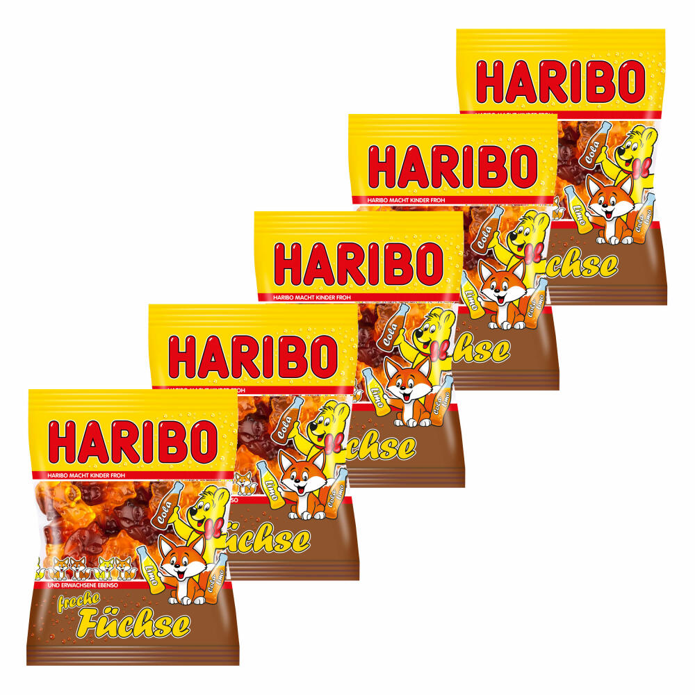 Haribo Cheeky Foxes, Pack of 5, Gummy Bears, Wine Gum, Fruit Gum, In Bag, Bag
