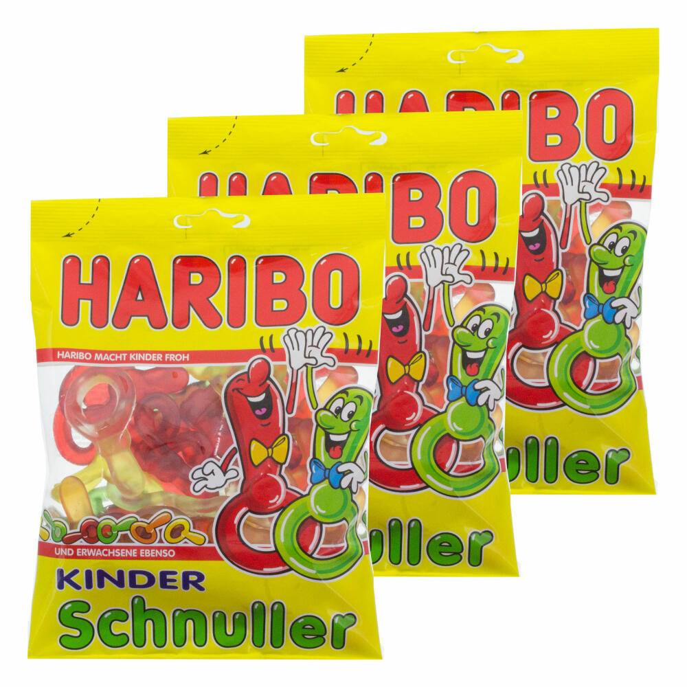 Haribo Children's Pacifiers, Pack of 3, Gummy Bears, Wine Gums, Fruit Gums, In Bag, Bag