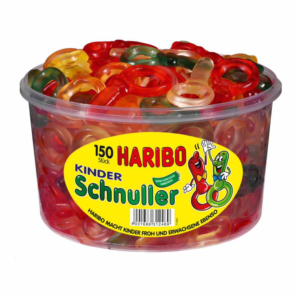 Colorful fruit gum for those with a sweet tooth - the Haribo children's pacifiers are available in strawberry, raspberry, juicy orange, lemon and pineapple flavors. With the practical, reusable household box, the 150 delicious pacifiers can be enjoyed for a particularly long time.