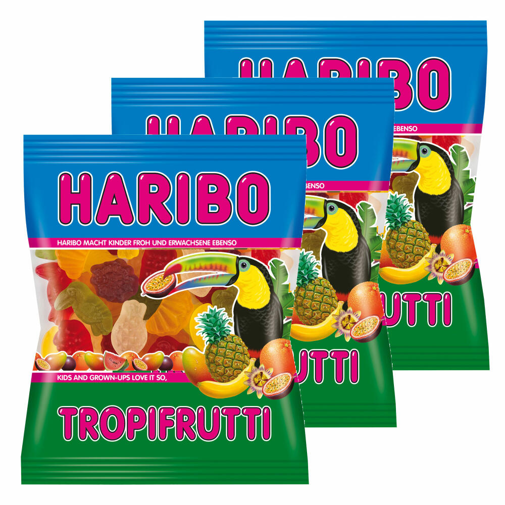 Haribo Tropifrutti, Pack of 3, Gummy Bears, Wine Gum, Fruit Gum, In Bag, Bag