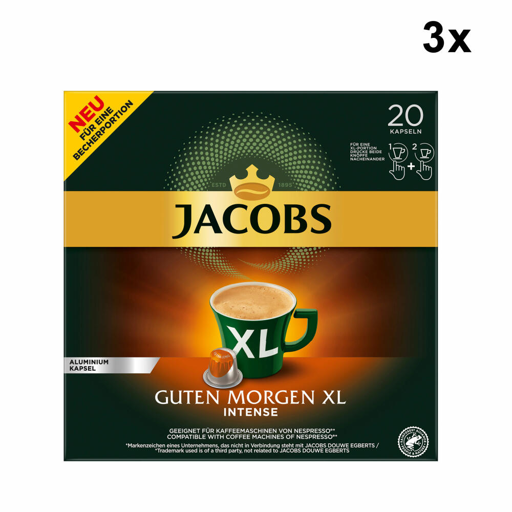 Jacobs Guten Morgen XL Intense Set of 3, Coffee Capsules, Nespresso Compatible, Coffee, 3 x 20 Capsules