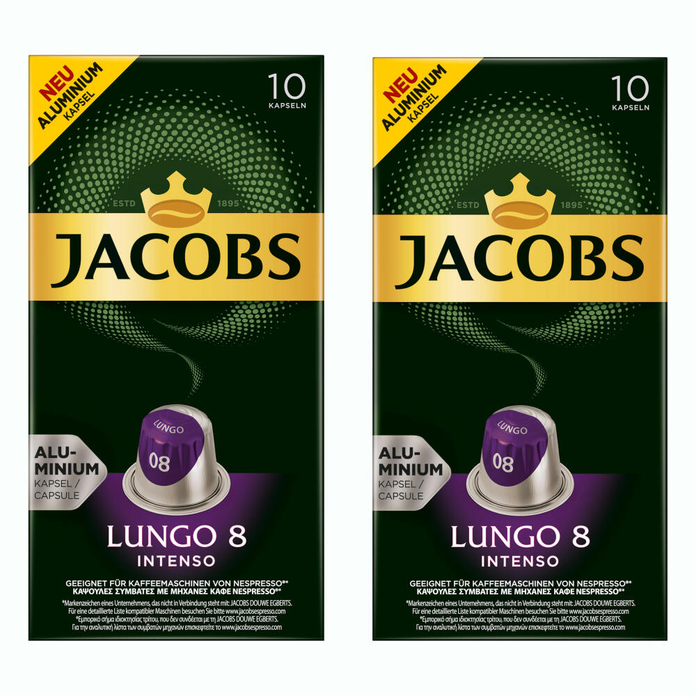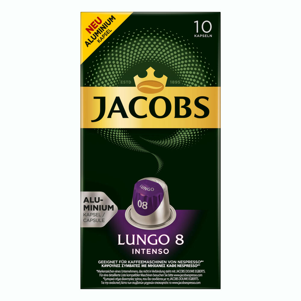 Jacobs Lungo 8 Intenso, coffee capsules, Nespresso compatible, coffee, 10 capsules, 5.2 g each: