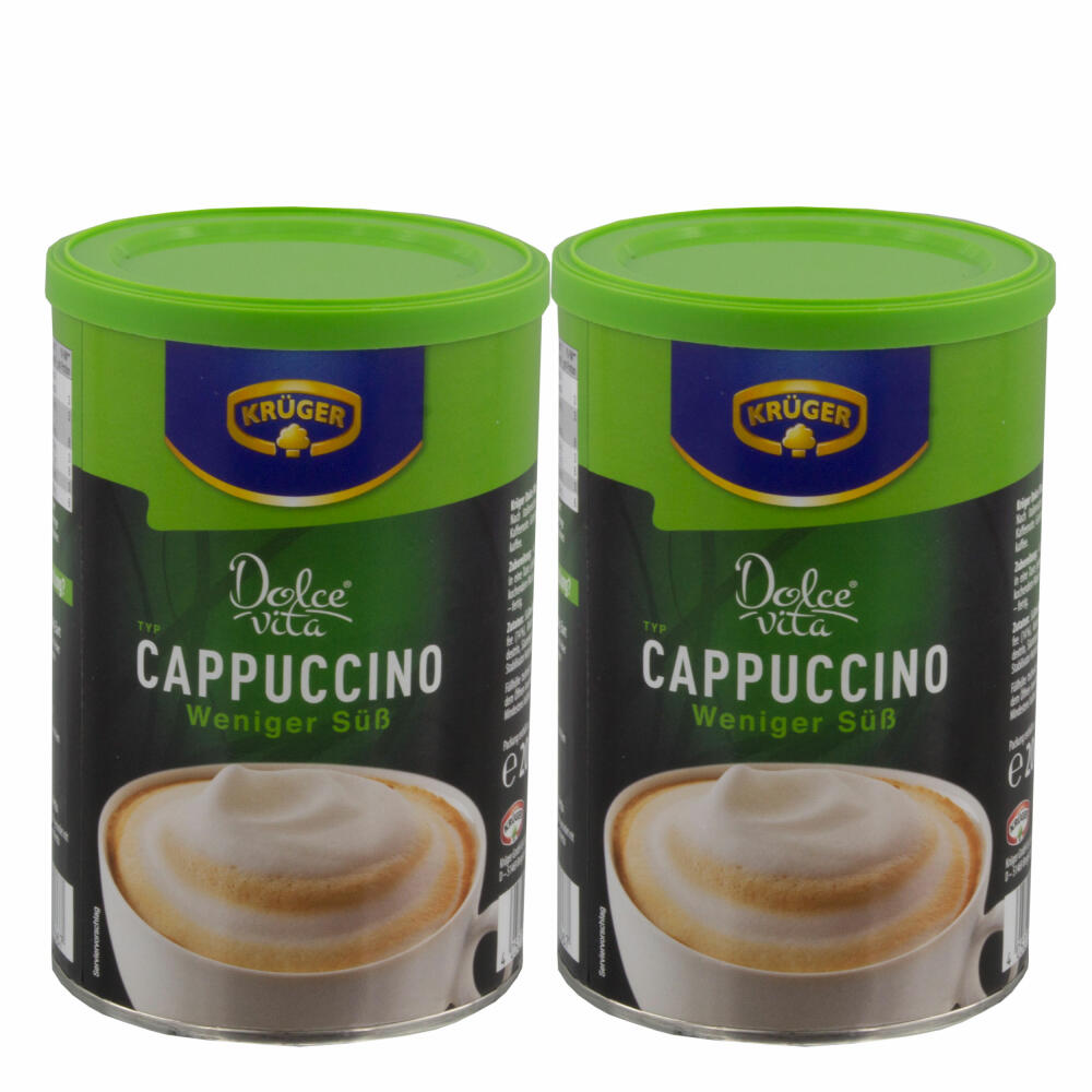 Krüger Dolce Vita Cappuccino, Less Sweet, Milk Coffee, Milk Coffee from Instant Bean Coffee, 2 x 200 g