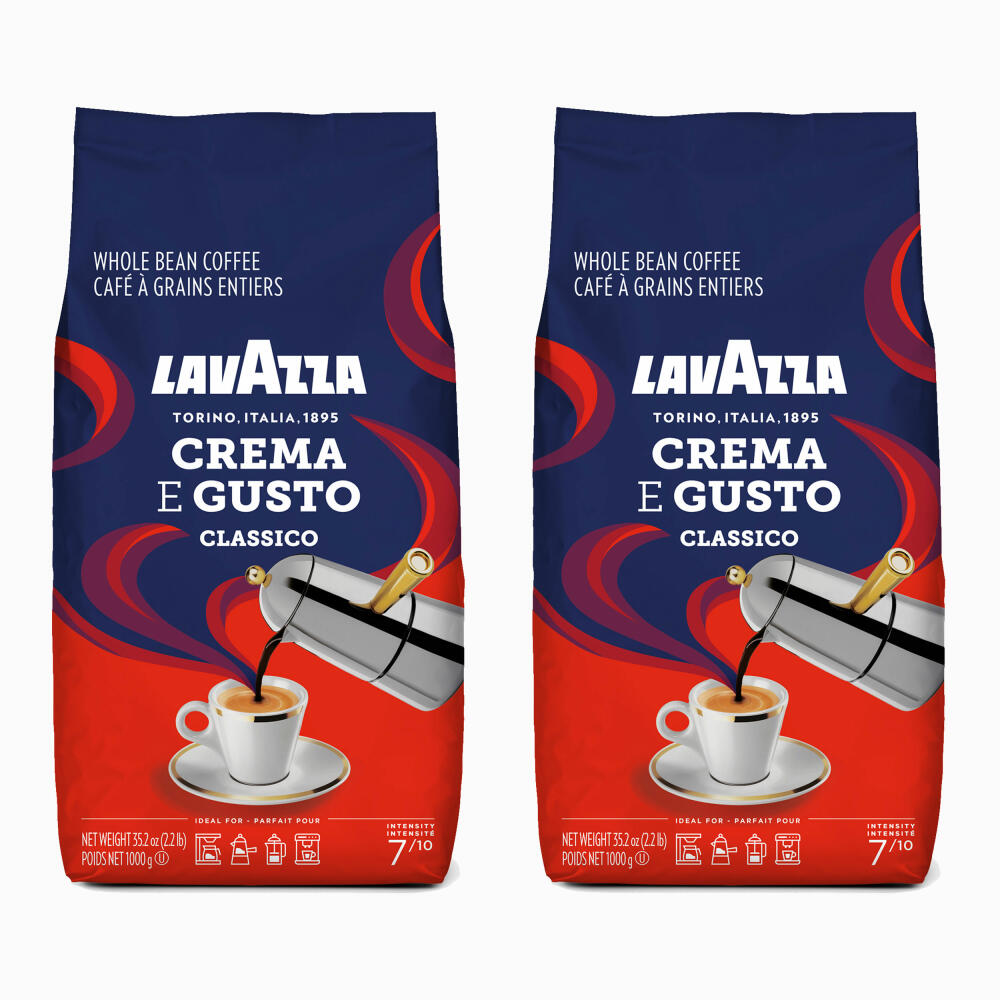 Lavazza Crema e Gusto Classico, Whole Beans, Coffee Beans, Coffee, Espresso, Bean Coffee, 2 x 1 kg