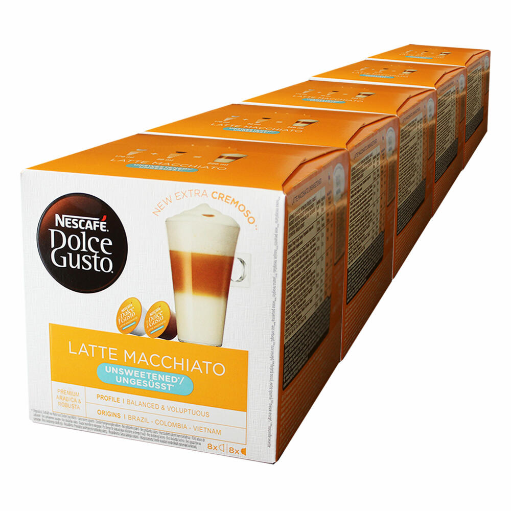 Nescafé Dolce Gusto Latte Macchiato Unsweetened, Coffee, Coffee Capsule, Pack of 5, 5 x 16 Capsules (40 Servings)