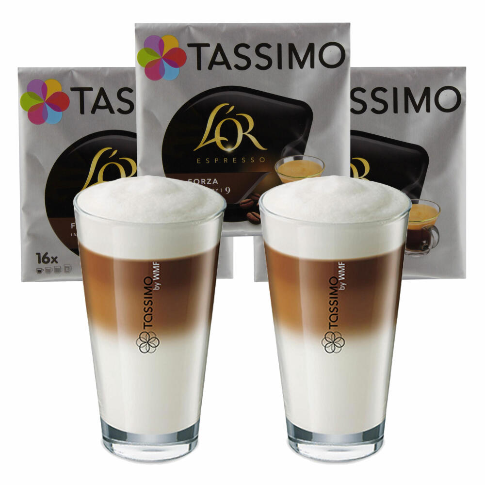 Tassimo L'Or Espresso Forza gift set with glass, 5 pcs., coffee, coffee capsule, ground roasted coffee, T-Discs