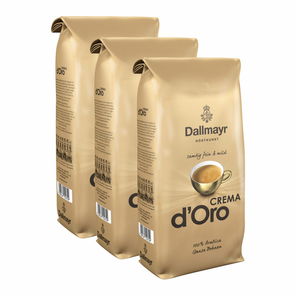 Dallmayr Crema dOro Kaffee, Bohnenkaffee, Röstkaffee, Ganze Bohnen, Kaffebohnen, Kaffee Crema, 3er Set, 3 x 1000 g
