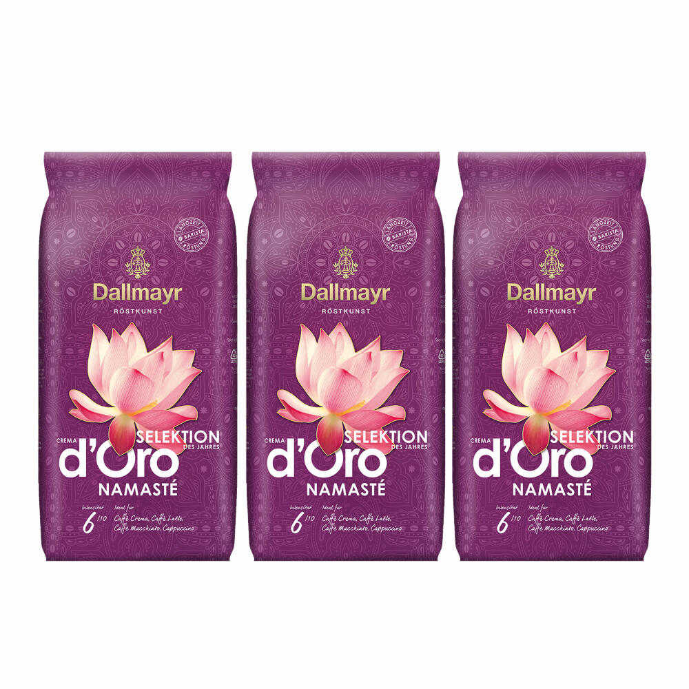 Dallmayr Crema dOro Selektion des Jahres 2023 Namasté Kaffee, 3er Set, Bohnenkaffee, Röstkaffee, Ganze Bohnen, Kaffebohnen, 3 x 1000 g