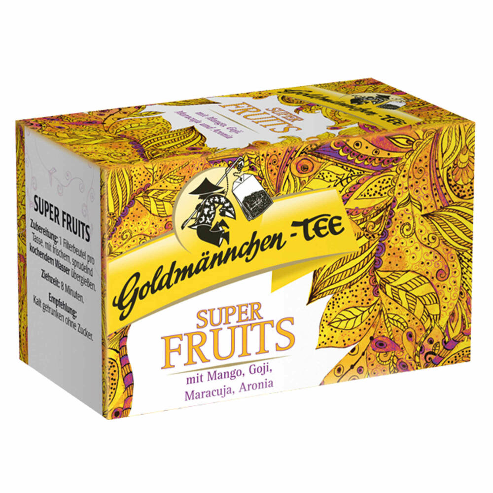 Goldmännchen Super Fruits Tee mit Mango, Goji, Maracuja, Aronia, Obsttee, Früchtetee, 20 Filterbeutel à 2.25 g