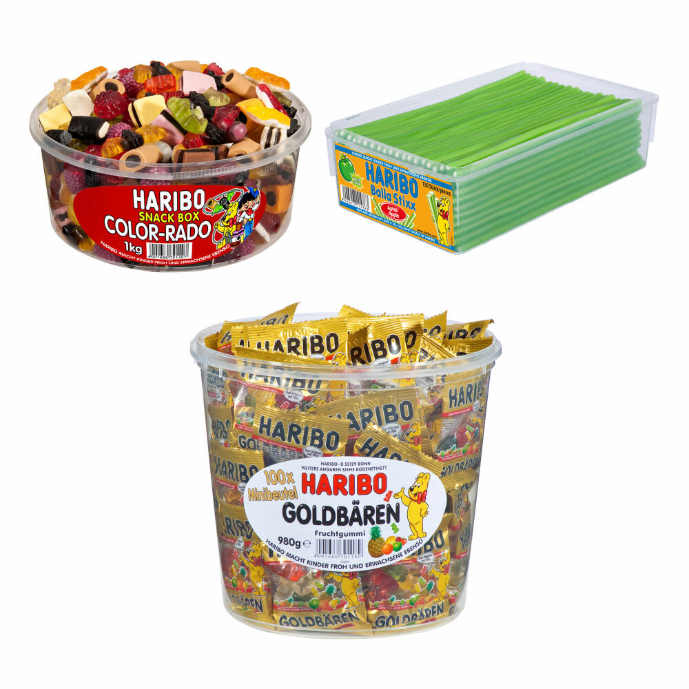 Haribo Fruchtgummi Hamsterkauf Set, Notfall Vorrats Pack, Gummibärchen, Weingummi, Fruchtgummi