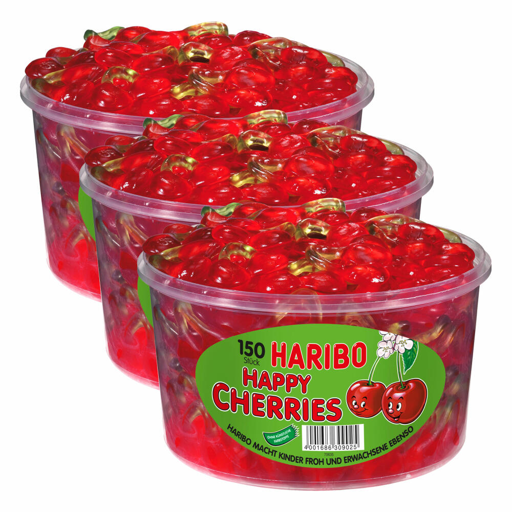 Haribo Happy Cherries, 3er Pack, Gummibärchen, Weingummi, Fruchtgummi, Dose