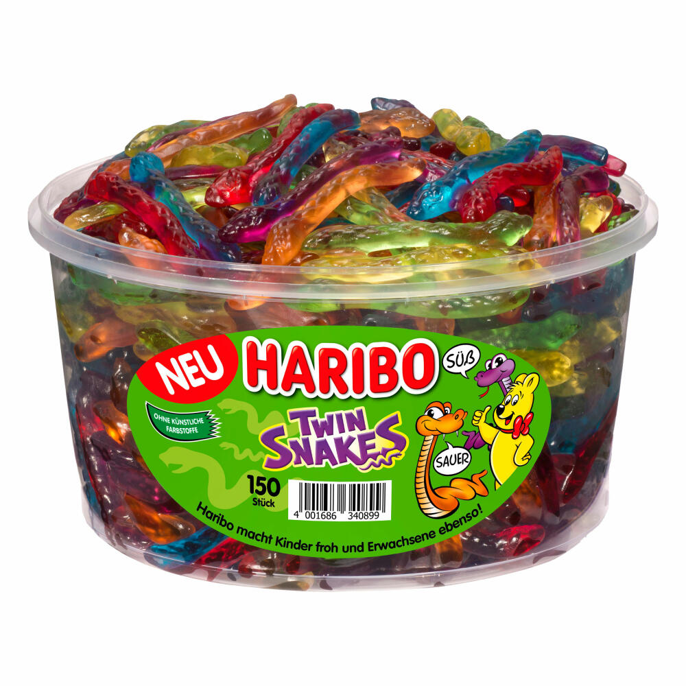 Haribo Twin Snakes, Gummibärchen, Weingummi, Fruchtgummi, 150 Stück, Dose, 1200 g: