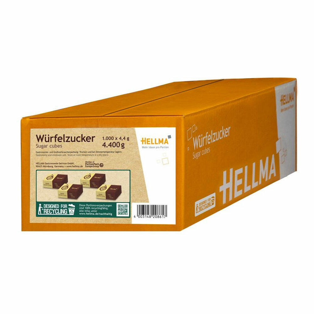 Hellma Würfelzucker in Nachhaltiger Verpackung, Zucker, Portionszucker, Feinzucker, Zuckerwürfel, für Gastro, Hotel, Büro, Kantine, 1000 Stück à 4.40 g