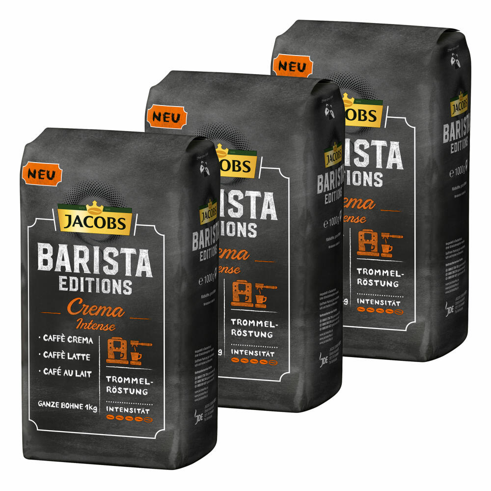 Jacobs Barista Editions Crema Intense, Bohnenkaffee, ganze Bohnen, Röstkaffee, Kaffeebohnen, 3 x 1000 g