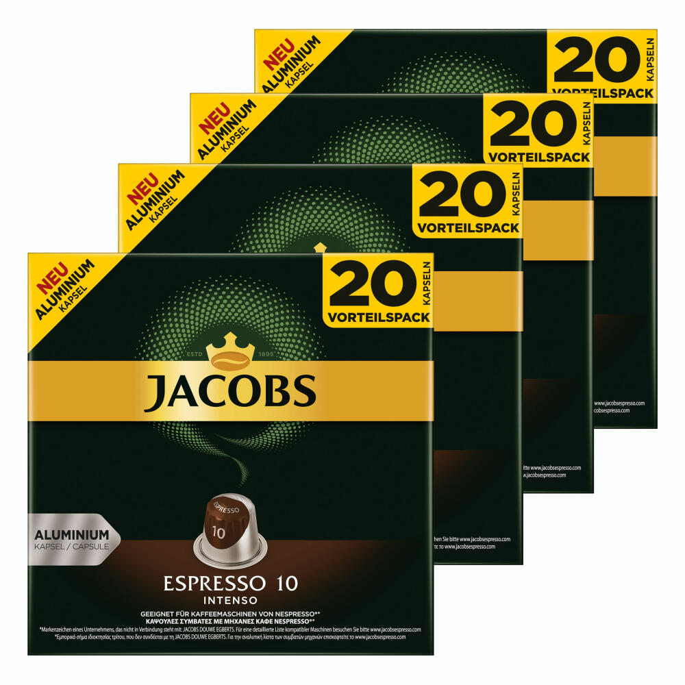 Jacobs Espresso 10 Intenso, Kaffeekapseln, Nespresso Kompatibel, Kaffee, 80 Kapseln, á 5.2 g