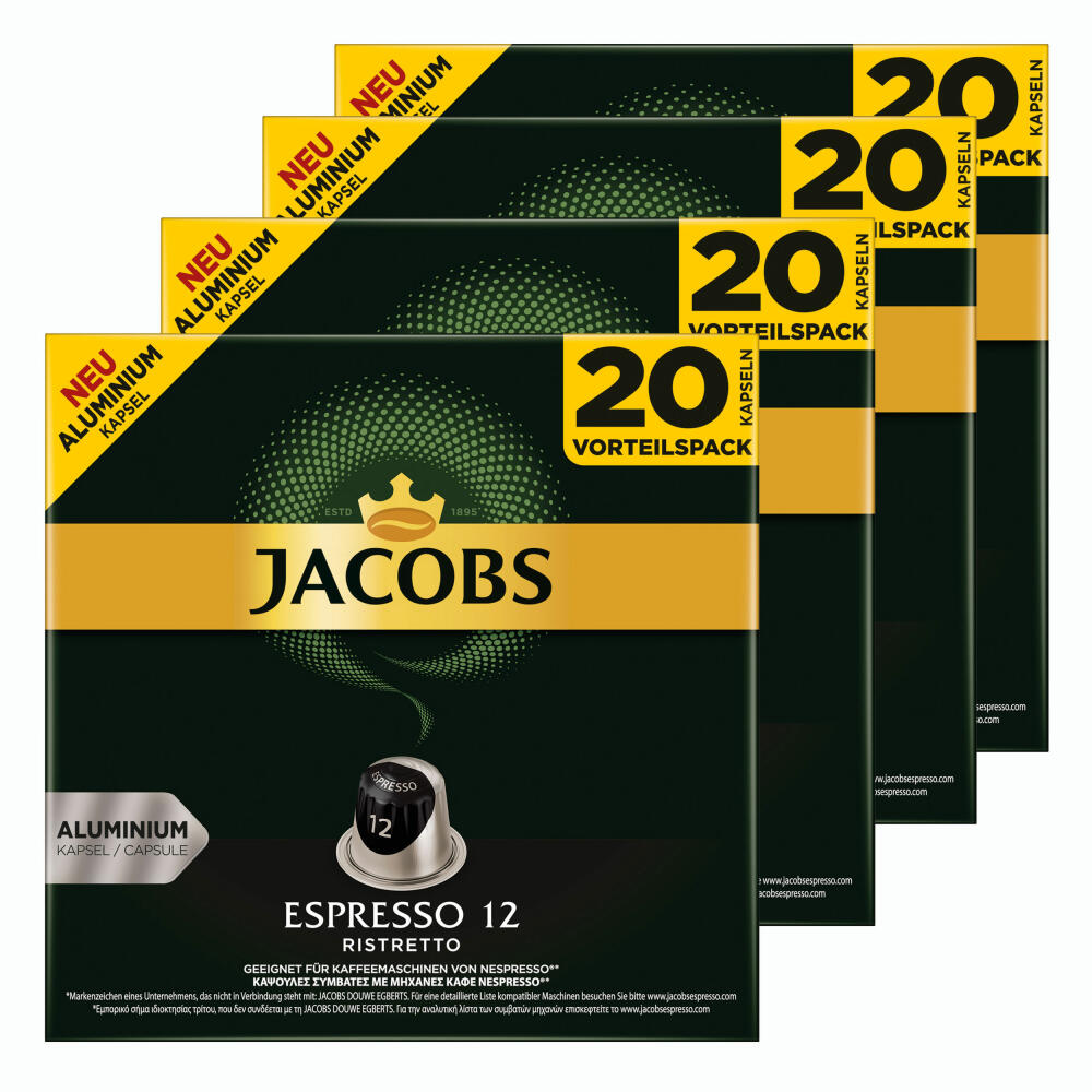 Jacobs Espresso 12 Ristretto, Kaffeekapseln, Nespresso Kompatibel, Kaffee, 80 Kapseln, á 5.2 g
