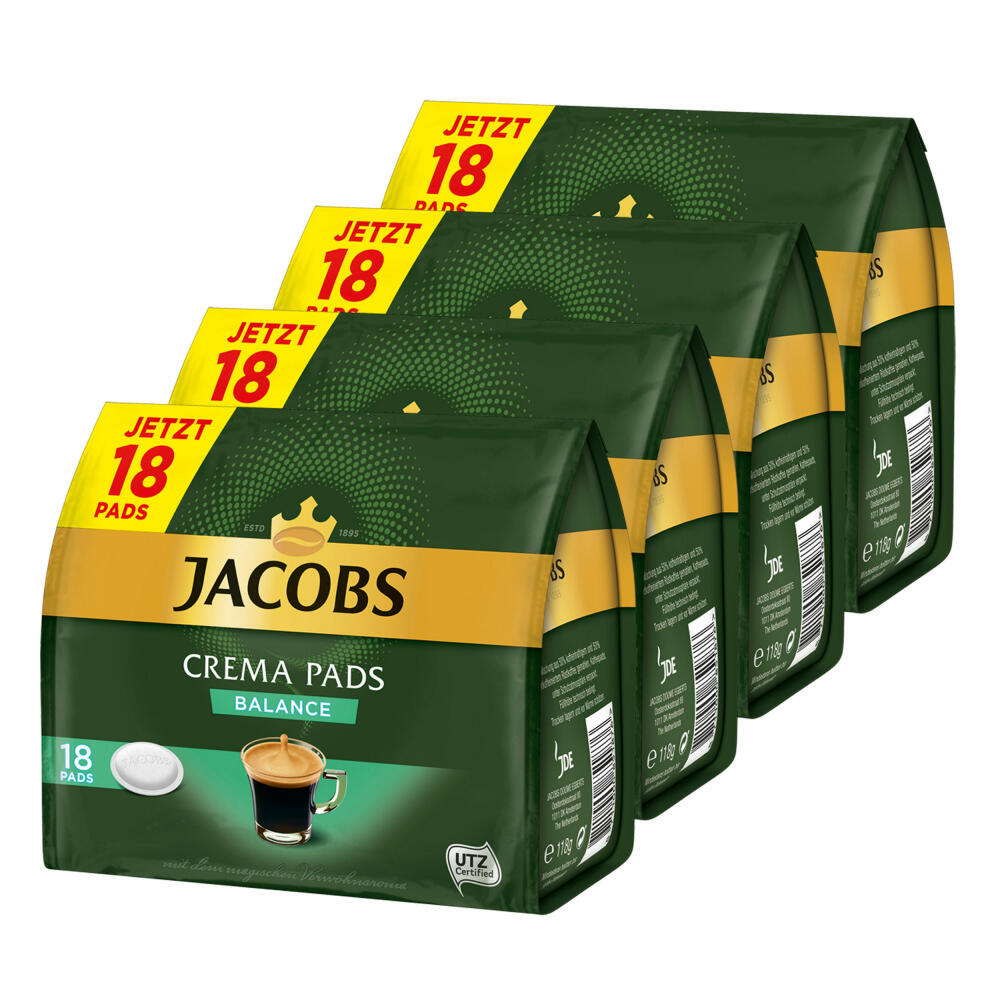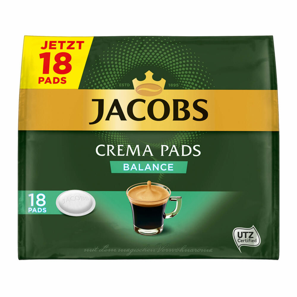 Jacobs Kaffeepads Crema Pads, Balance, Samtiger & Weicher Geschmack, Kaffee, 18 Pads:
