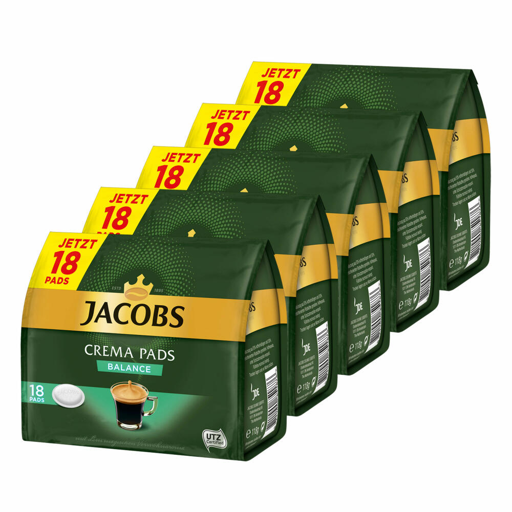 Jacobs Kaffeepads Crema Pads, Balance, Samtiger & Weicher Geschmack, Kaffee, 90 Pads