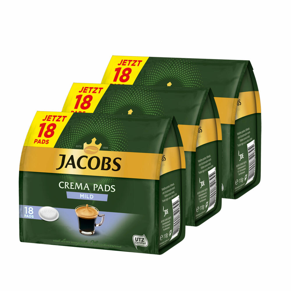 Jacobs Kaffeepads Crema Pads, Mild, Milder & Weicher Geschmack, Kaffee, 54 Pads