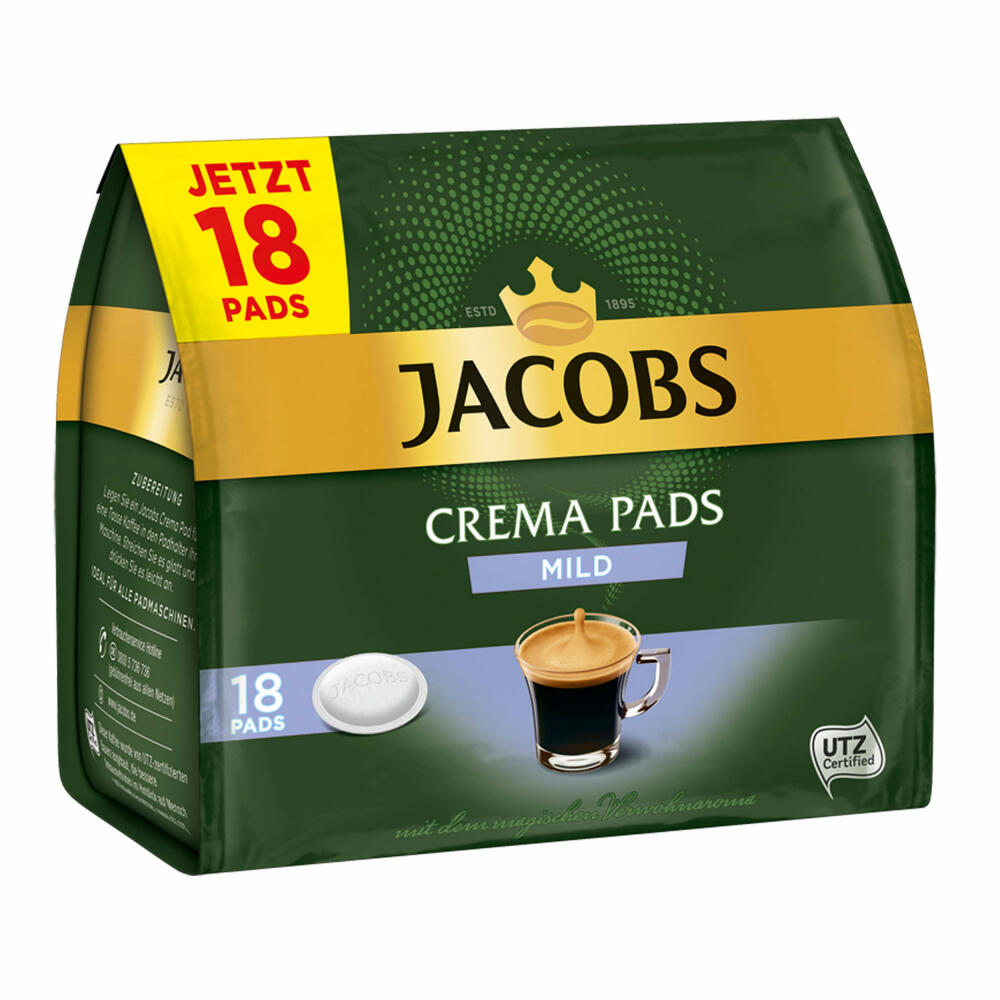 Jacobs Kaffeepads Crema Pads, Mild, Milder & Weicher Geschmack, Kaffee, 18 Pads: