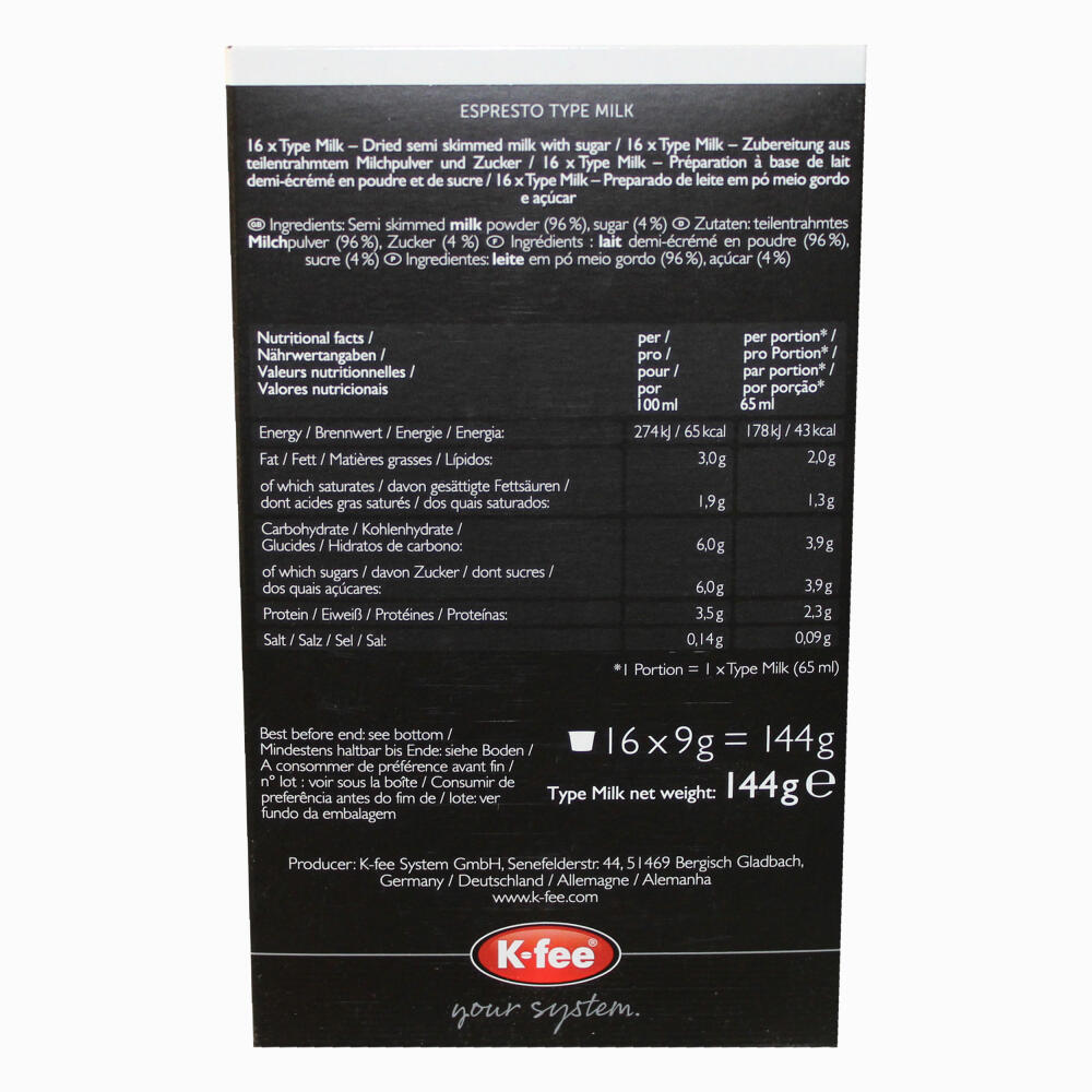 K-Fee Espresto Milchkapsel für Kaffee & Tee, Milch, Crema Latte, 16 Kapseln: