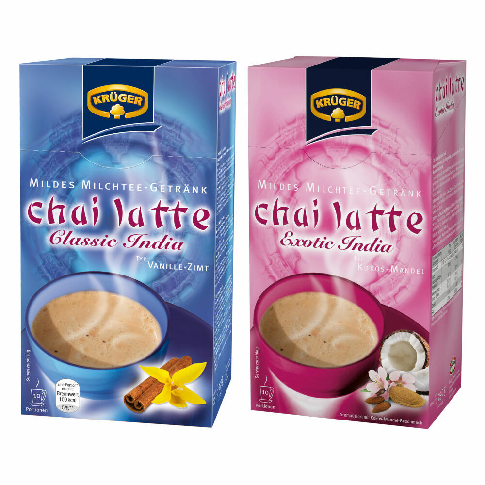 Krüger Chai Latte Classic & Exotic India Set, Mildes Milchtee Getränk, Zwei Verschieden Sorten