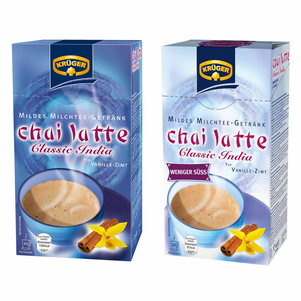 Krüger Chai Latte Classic Set, mildes Milchtee Getränk, Vanille-Zimt und weniger Süss
