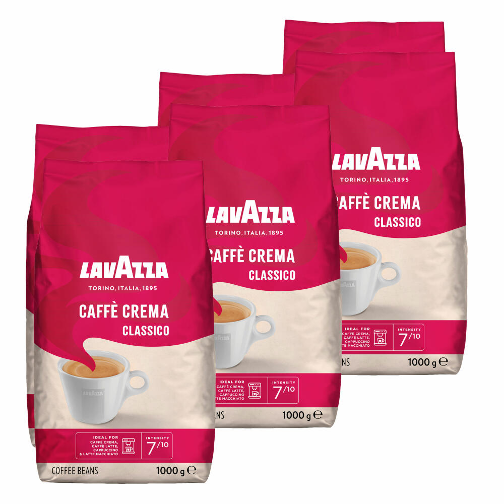Lavazza Kaffee Caffe Crema Classico, ganze Bohnen, Bohnenkaffee, Set, 6 x 1000 g