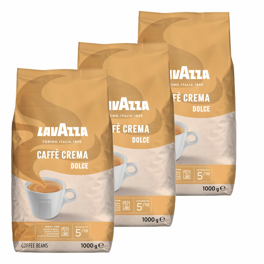Lavazza Kaffee Caffe Crema Dolce, ganze Bohnen, Bohnenkaffee, Set, 3 x 1000 g