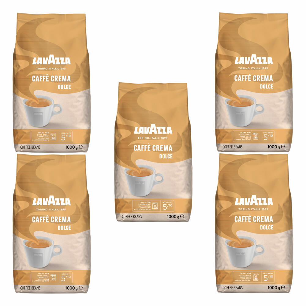 Lavazza Kaffee Caffe Crema Dolce, ganze Bohnen, Bohnenkaffee, Set, 5 x 1000 g