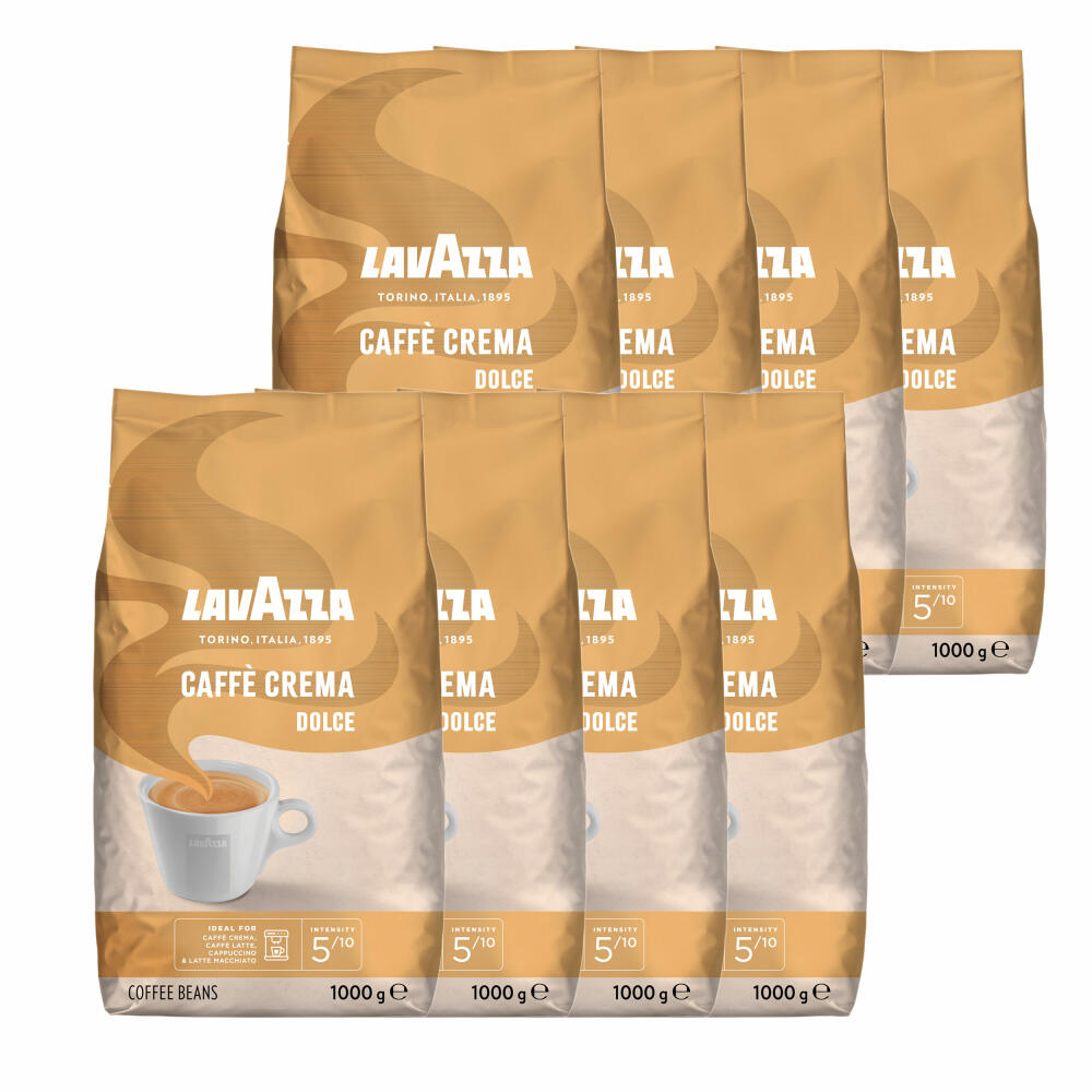 Lavazza Kaffee Caffe Crema Dolce, ganze Bohnen, Bohnenkaffee, Set, 8 x 1000 g