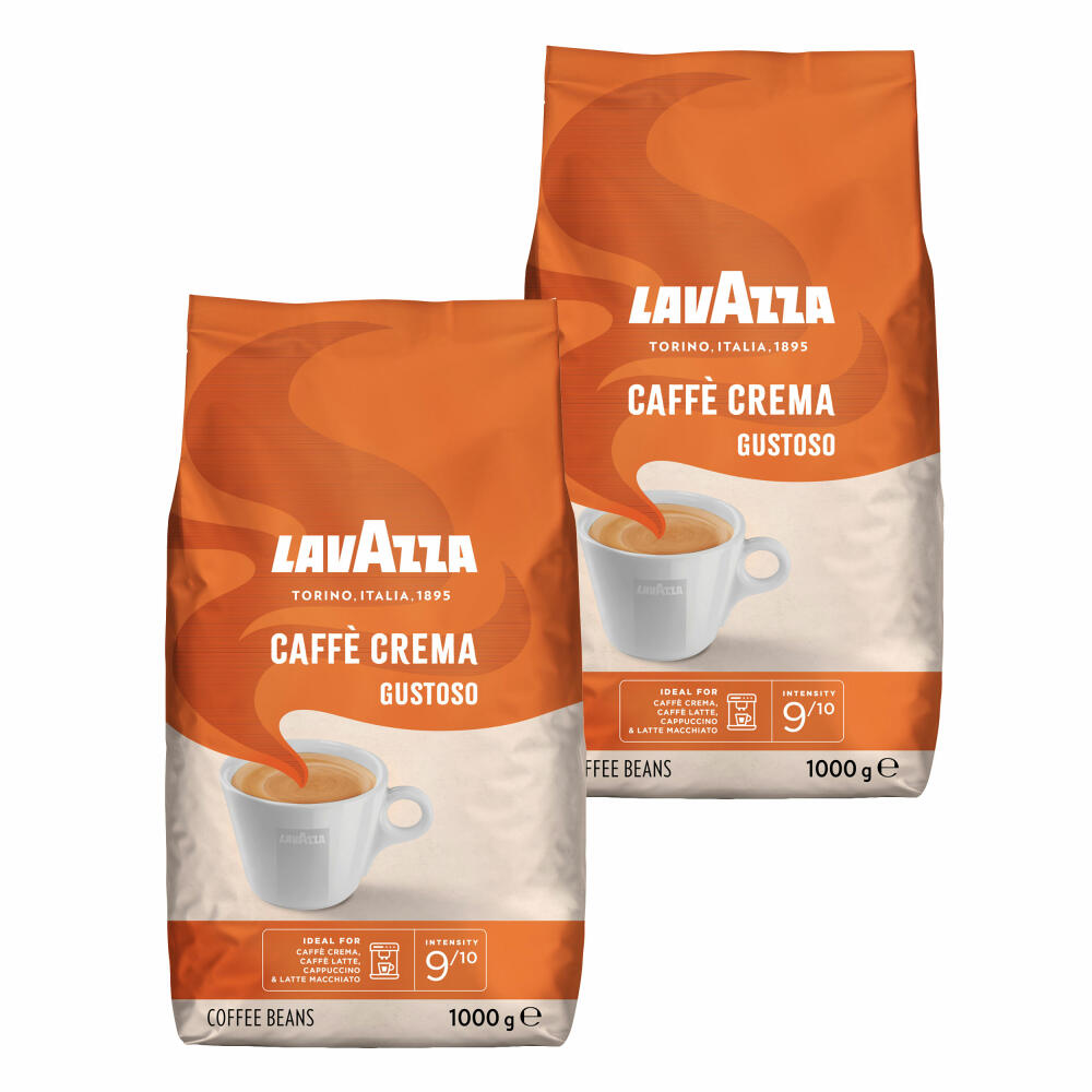 Lavazza Kaffee Caffe Crema Gustoso, ganze Bohnen, Bohnenkaffee, Set, 2 x 1000 g