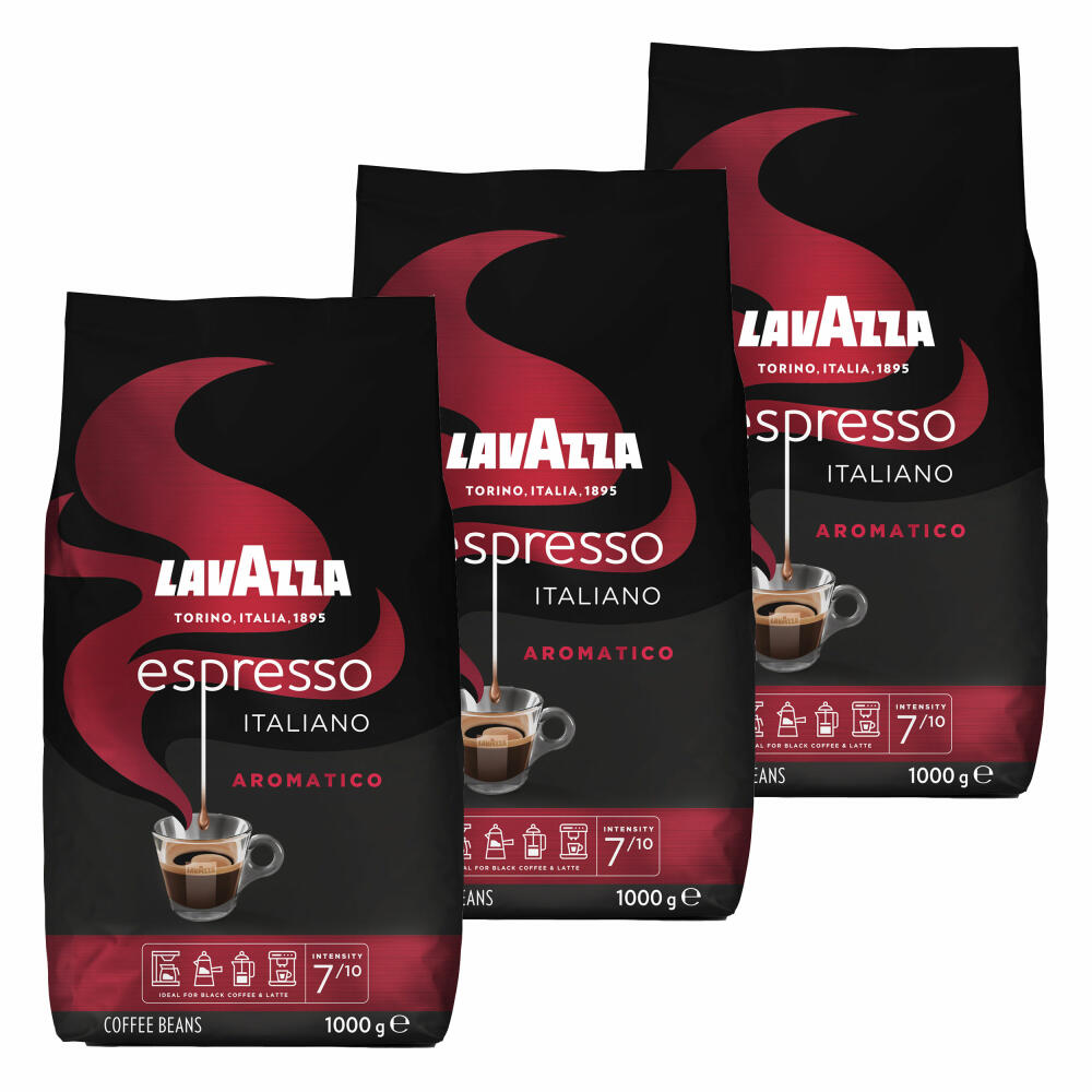 Lavazza Kaffee Espresso Italiano Aromatico, ganze Bohnen, Bohnenkaffee, Set, 3 x 1000 g