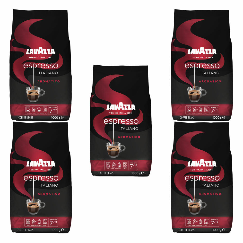 Lavazza Kaffee Espresso Italiano Aromatico, ganze Bohnen, Bohnenkaffee, Set, 5 x 1000 g