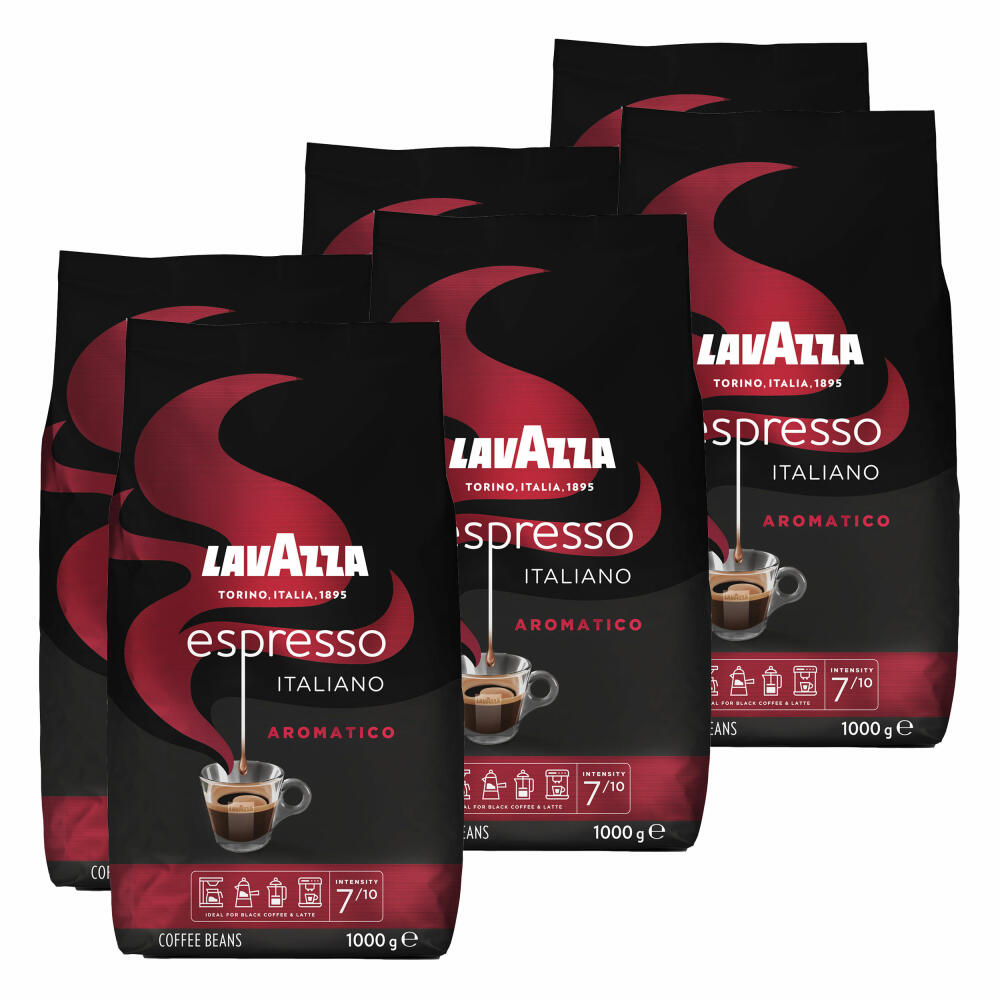 Lavazza Kaffee Espresso Italiano Aromatico, ganze Bohnen, Bohnenkaffee, Set, 6 x 1000 g