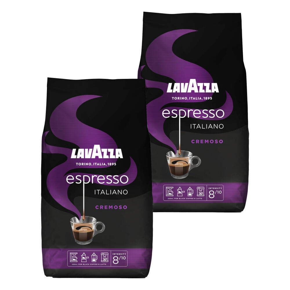 Lavazza Kaffee Espresso Italiano Cremoso, ganze Bohnen, Bohnenkaffee, Set, 2 x 1000 g