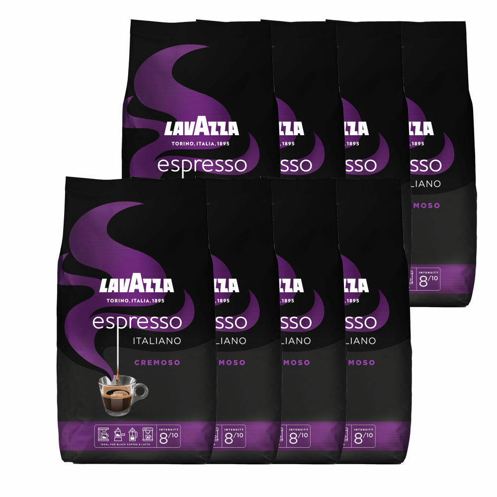 Lavazza Kaffee Espresso Italiano Cremoso, ganze Bohnen, Bohnenkaffee, Set, 8 x 1000 g