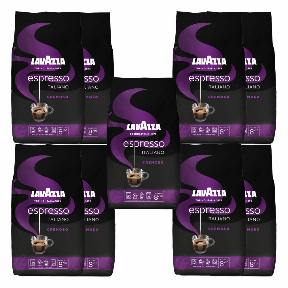 Lavazza Kaffee Espresso Italiano Cremoso, ganze Bohnen, Bohnenkaffee, Set, 9 x 1000 g