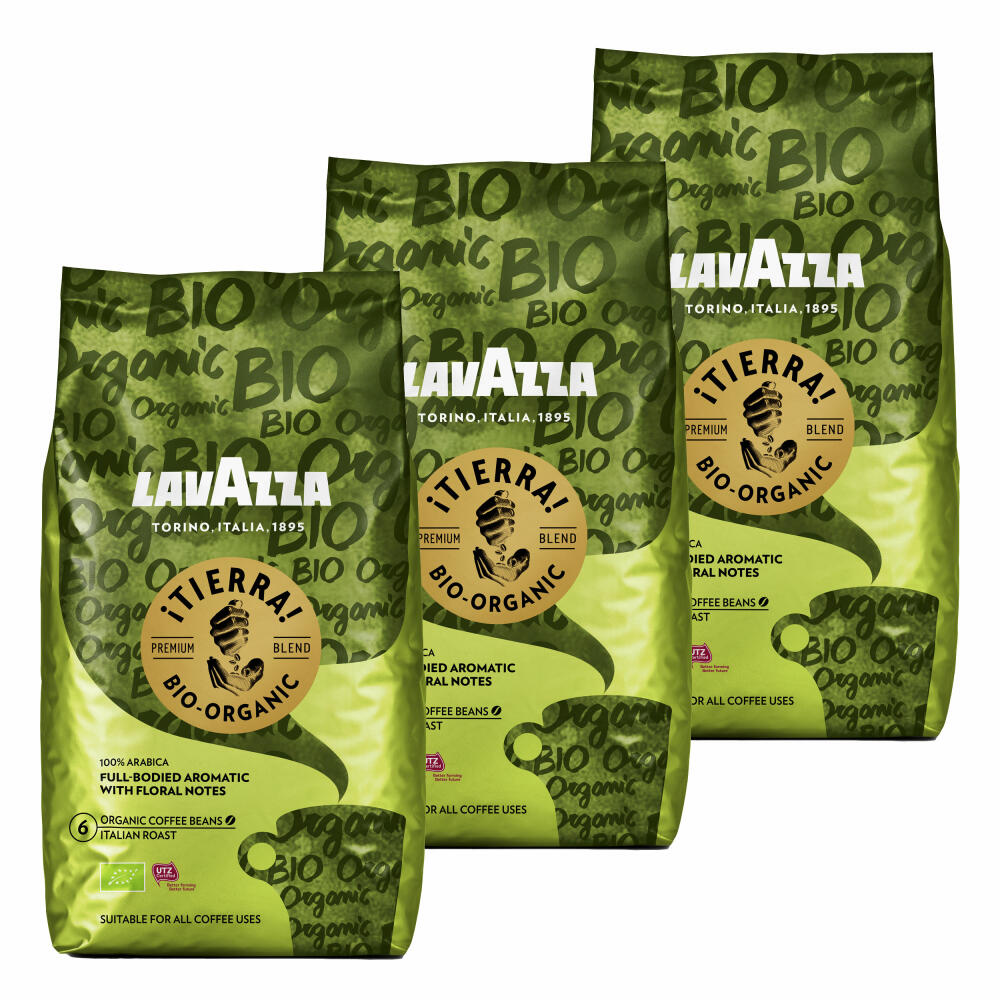 Lavazza Kaffee Tierra Bio Organic, ganze Bohnen, Bohnenkaffee, Set, 3 x 1000 g