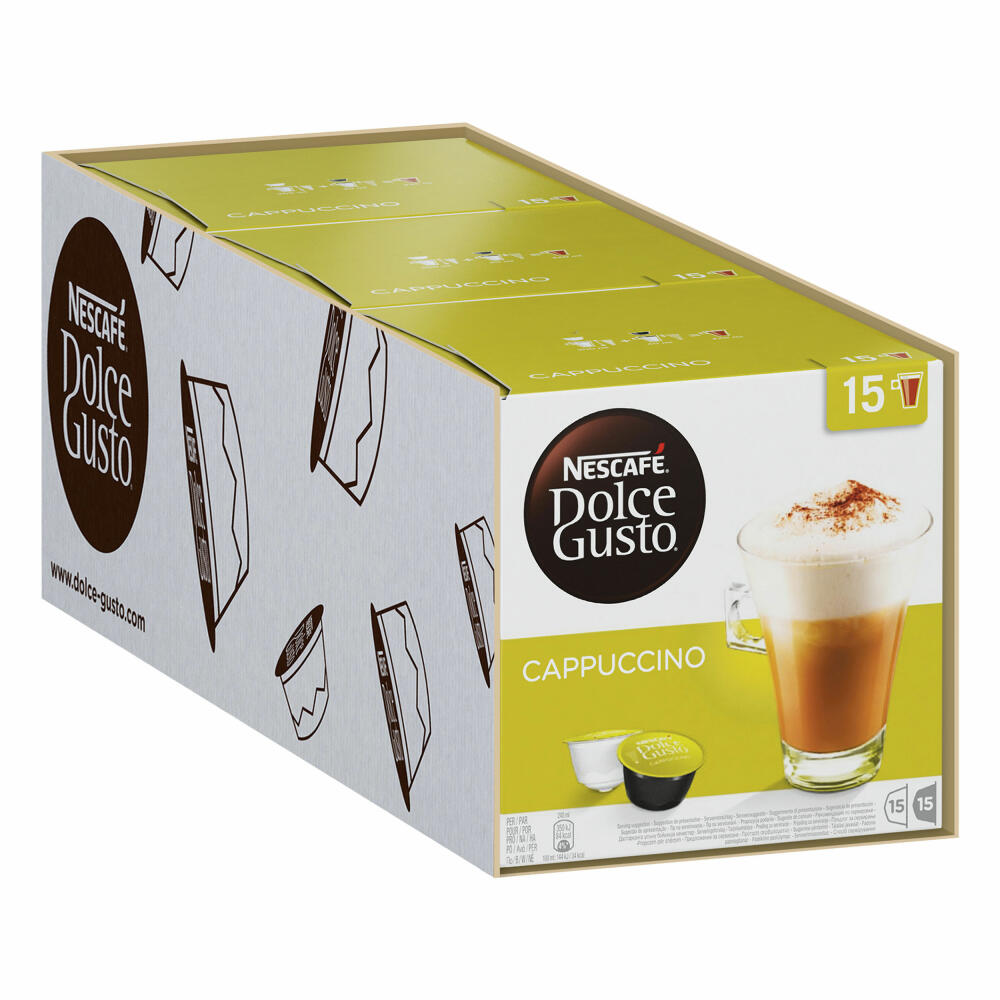 Nescafé Dolce Gusto Cappuccino 30er Box, Kaffee, Kaffeekapseln, Milchkapseln, 90 Kapseln, (45 Portionen)