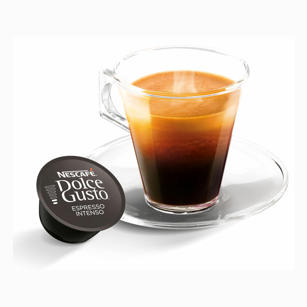 Nescafé Dolce Gusto Espresso Intenso: Eine Kombination aus vollmundigen Robusta-Bohnen und fruchtigen Arabica-Bohnen, die durch ihr Aroma einen intensiven und kräftigen Kaffeegenuss garantieren