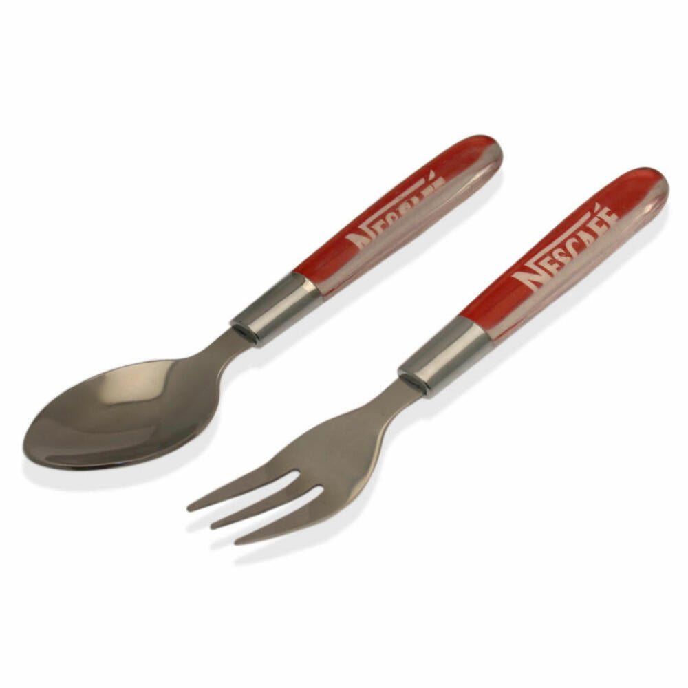 Nescafé Design Besteck (Gabel und Löffel) mit Kunststoff-Griff. Perfekt zum Kaffee und Kuchen.