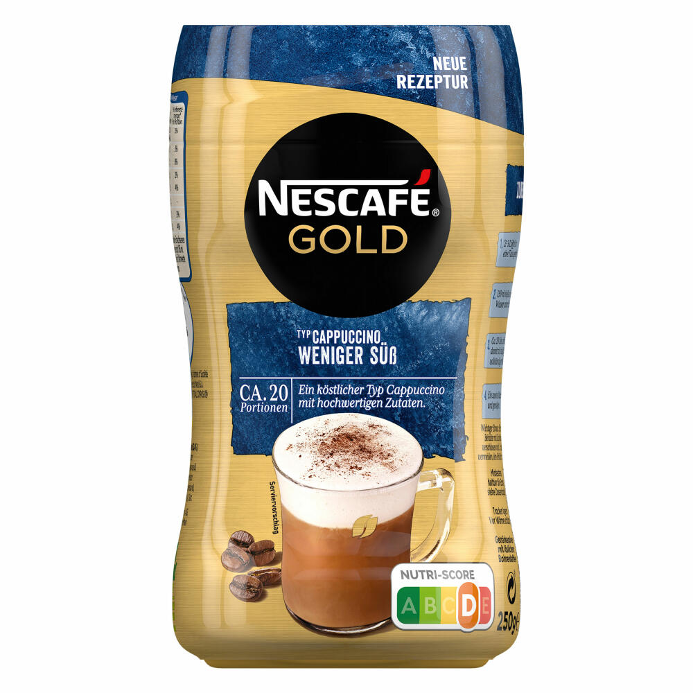 Nescafé Gold Typ Cappuccino Weniger Süß, Löslicher Kaffee, Instantkaffee, Dose 250 g, 012404760: