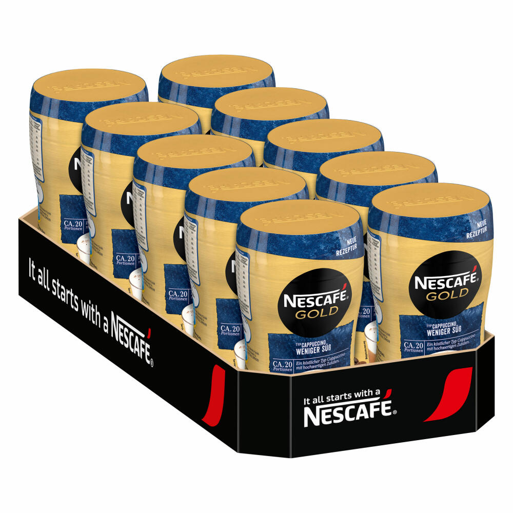 Nescafé Gold Typ Cappuccino Weniger Süß, Löslicher Kaffee, Instantkaffee, Kaffee, Dose, 10 x 250 g, 12311731