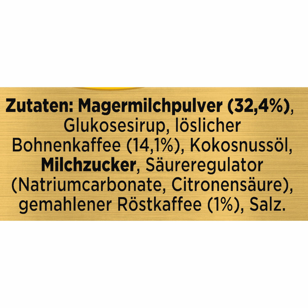 Nescafé Gold Typ Cappuccino Weniger Süß ist eine Instant-Kaffeemischung die mit erlesenen Kaffeebohnen Magermilchpulver und Zucker hergestellt ist.
