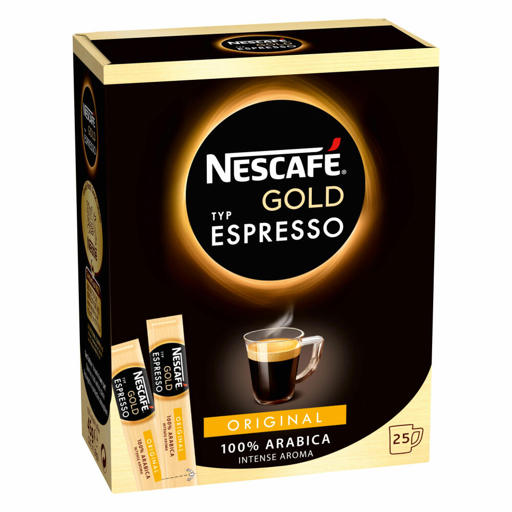 Nescafé Gold Typ Espresso, Sticks, Löslicher Kaffee, Instantkaffee, Instant, Stick, 25 x 1.8g, 012408223: