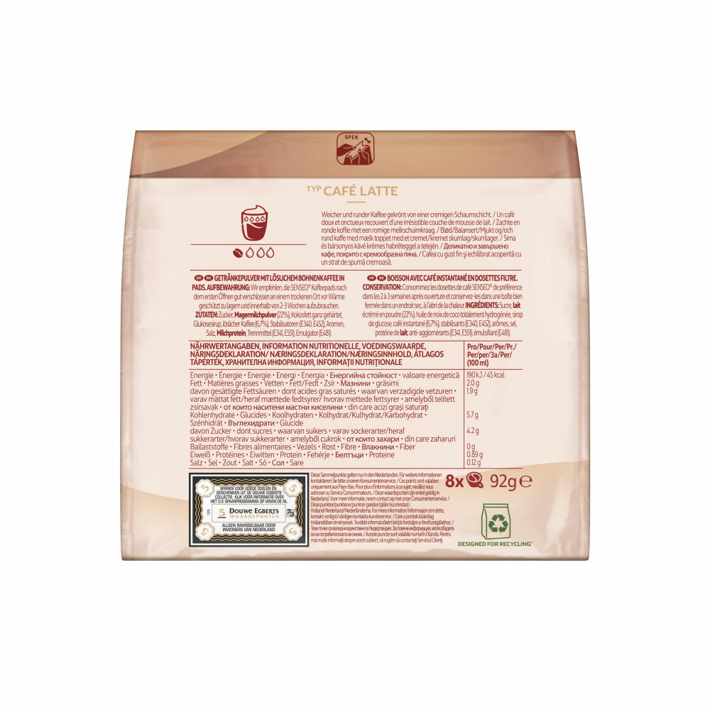 Senseo Kaffeepads Café Latte, Aromatischer Kaffee mit Cremig-milchigem Geschmack, neue Rezeptur, 8 Pads